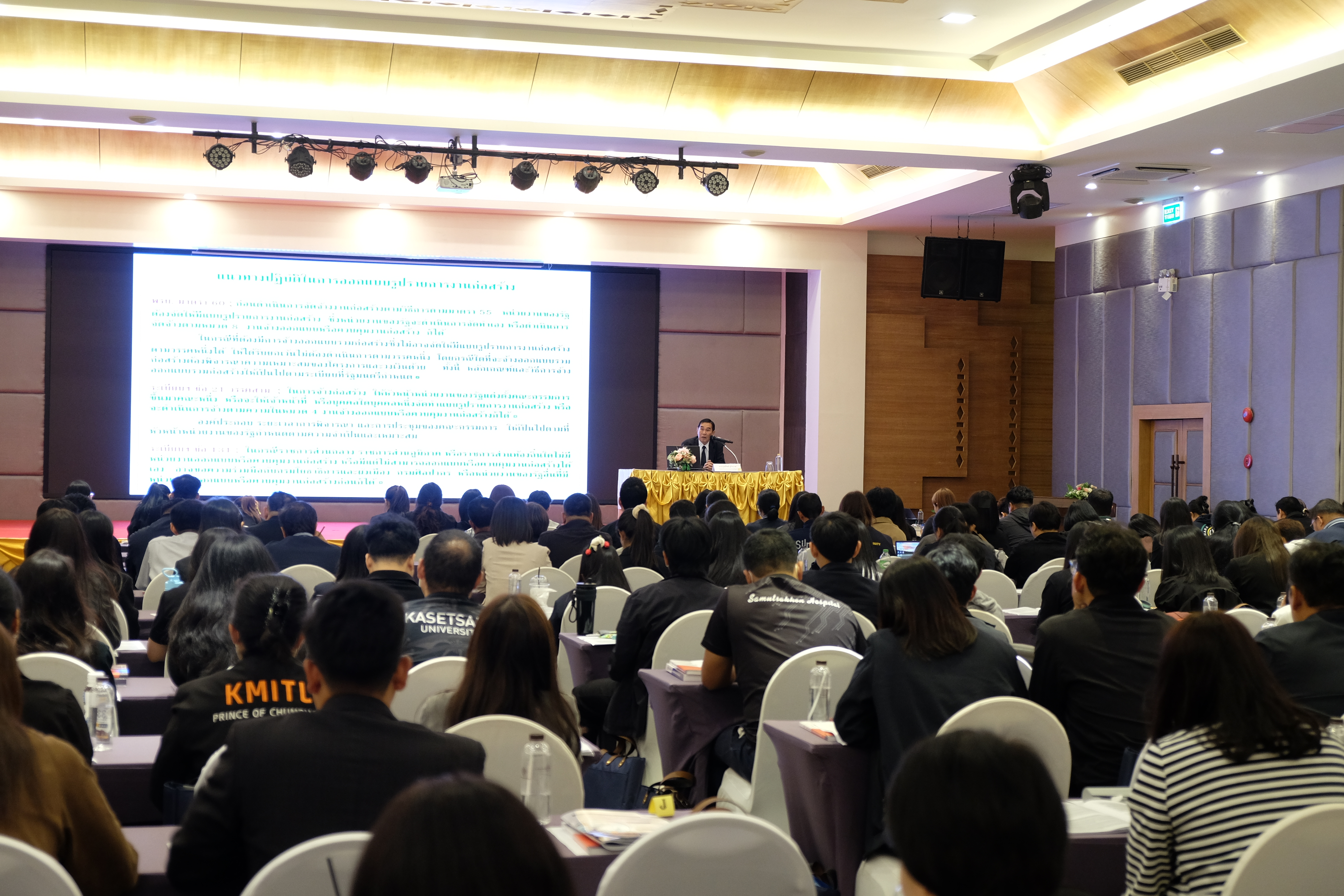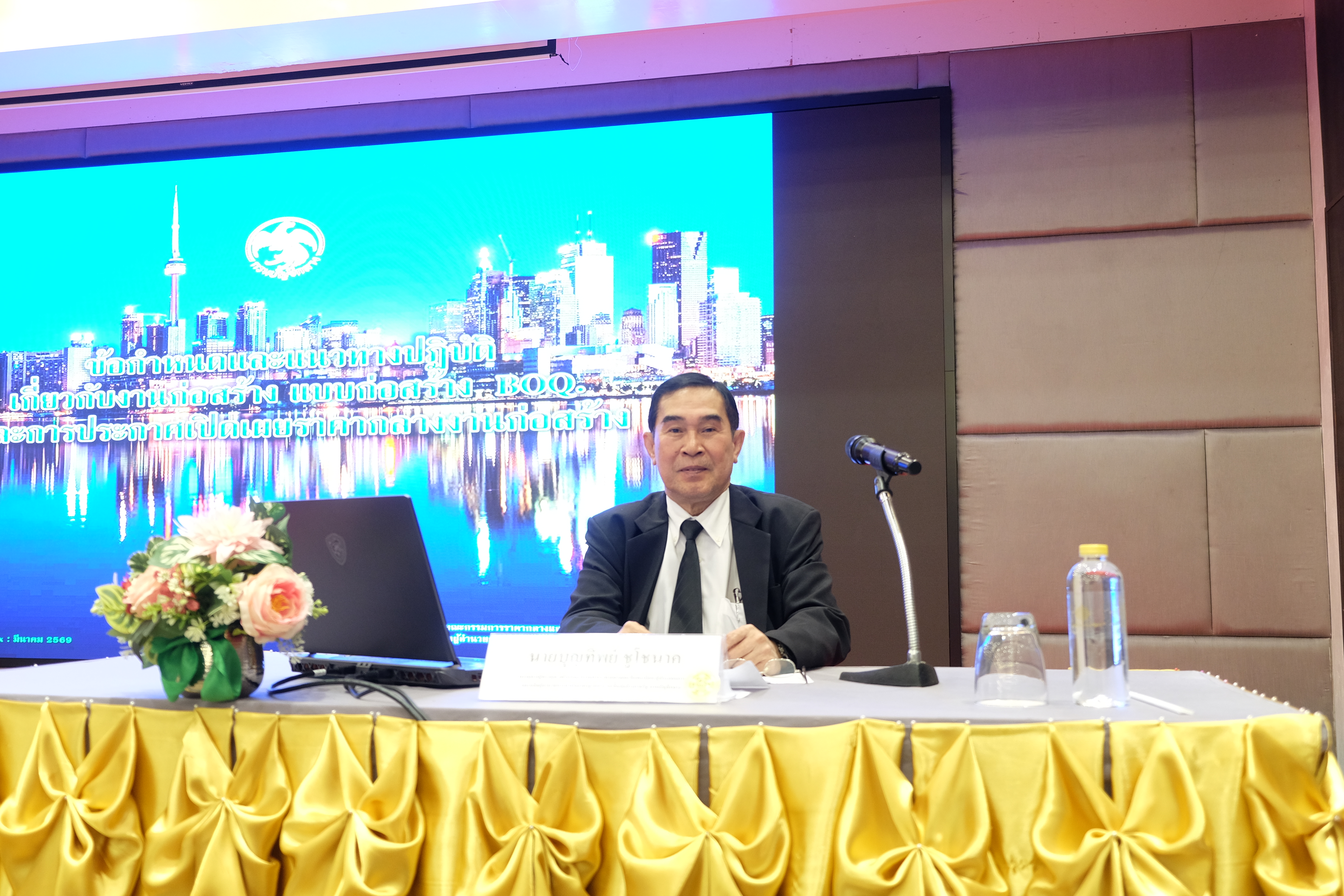 2. เรื่อง "การจัดทำราคากลางงานก่อสร้างตามหลักเกณฑ์ฉบับใหม่" วิทยากร นายบุญทิพย์ ชูโชนาค กรรมการผู้ทรงคุณวุฒิในคณะกรรมการราคากลางและขึ้นทะเบียนผู้ประกอบการ และอดีตผู้อำนวยการสำนักมาตรฐานการ จัดซื้อจัดจ้างภาครัฐ กรมบัญชีกลาง